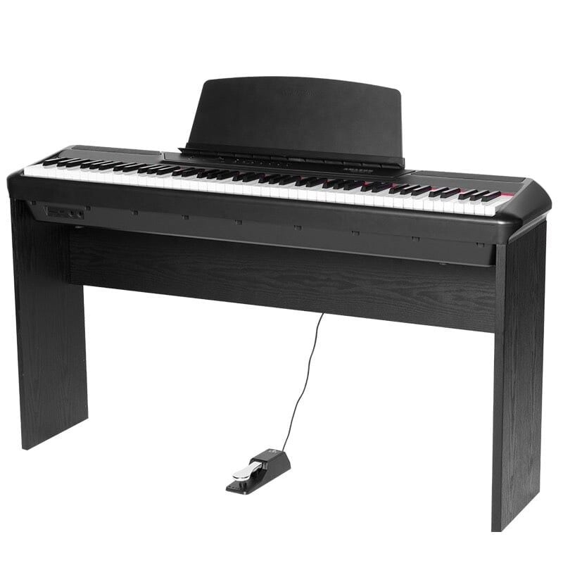 – Tặng bộ phụ kiện :Ghế piano, chân đàn kép chữ X, khăn phủ phím, giáo trình piano online, dây cáp kết nối, giắc cắm chuyển đổi tai phone.
